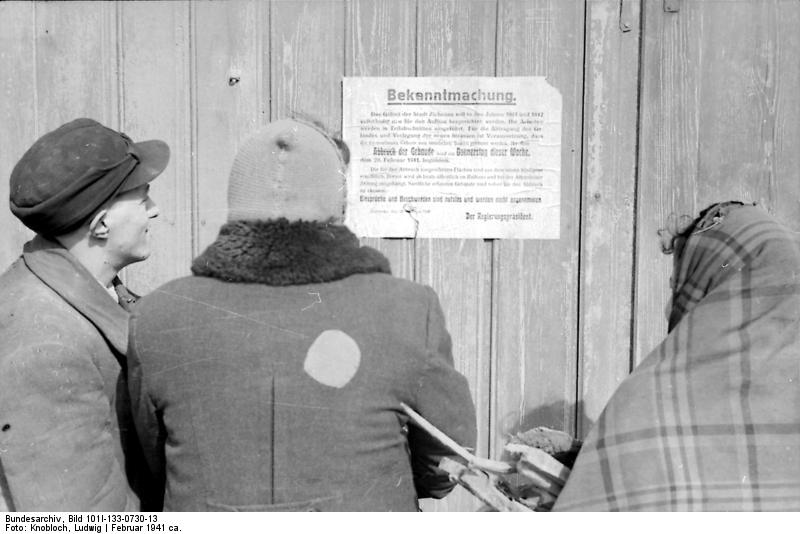 Polen – Jüdischer Mann und jüdische Frau lesen eine Proklamation, die sie weiter einschränkt