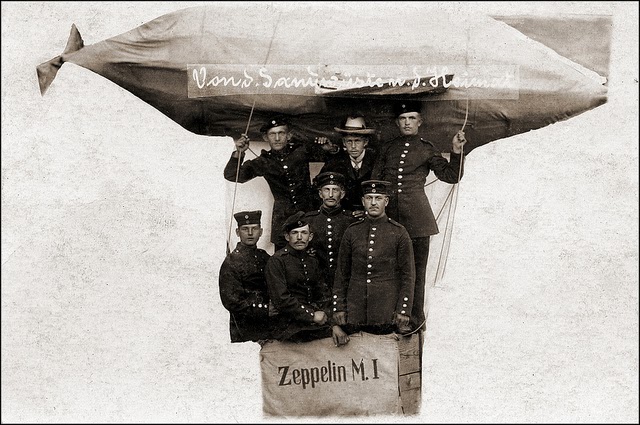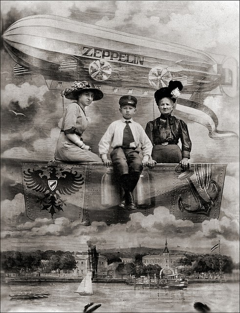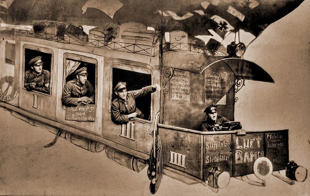 Militär-Zeppelin-Zug. Es handelte sich nur um einen amüsanten Hintergrund für Fotografien in den 1920er Jahren. |