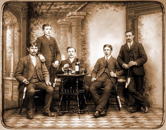 Diese lustigen Kerle sind wahrscheinlich deutsche Studenten. Tintyp, Deutschland, ca. 1900/1910. |