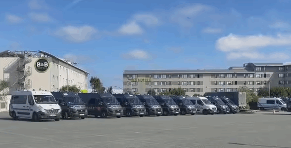 EXCLUSIVE: The Express spotted more than a dozen idle police vans as migrants launched a dinghy from a nearby beach. Empty police vans parked in a hotel they are commonly stationed at. (Image: Phil Harris) French police were seen idling on…